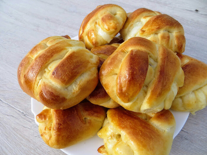 Классная начинка, все что я люблю! И конечно же интересный способ формирования булочек. Пробуем еще один рецепт несладкой выпечки из дрожжевого теста. Толи булочки, толи пирожки!Тесто самое простое, получится у всех. Мука просеяна, молоко теплое, масло мягкое, вот и вся подготовка.