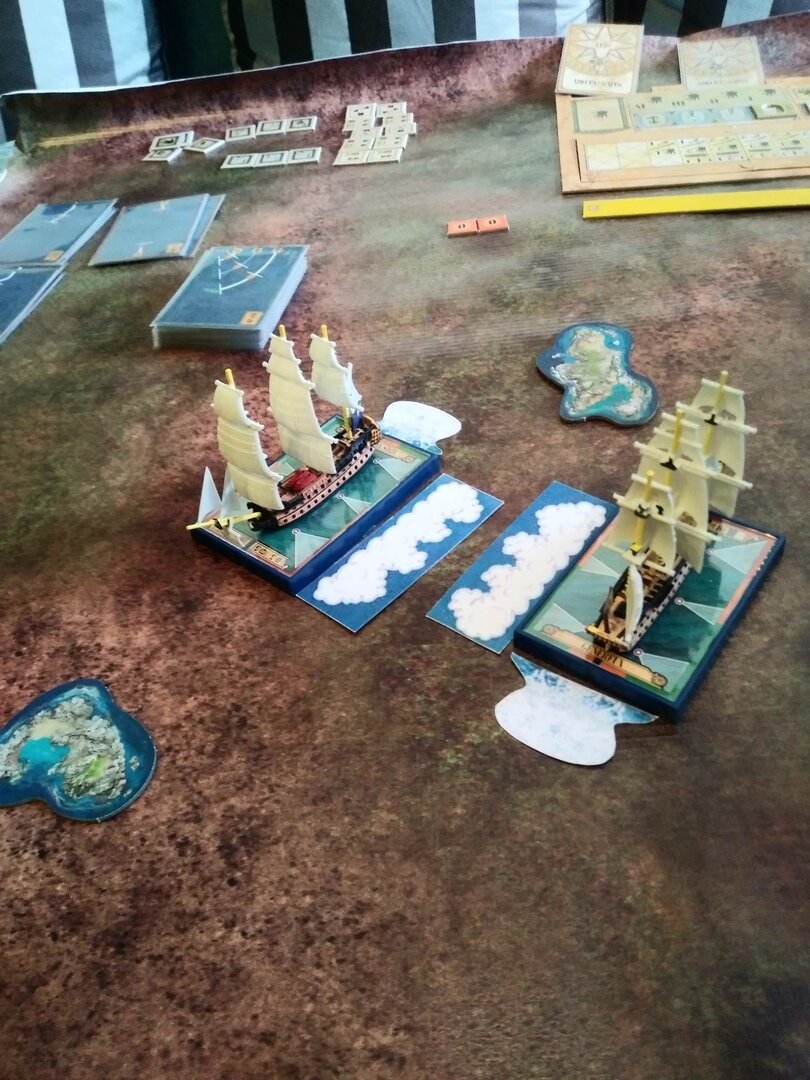 Изменение масштаба происходящего сразу же сказалось на управлении. Ведь скорость и дальность движения, а также маневренность у фрегатов и линейных кораблей отличается. Поэтому приходится думать, как не оторваться друг от друга и подловить соперника. Для реализма добавили опциональное правило по возможному изменению направления ветра.