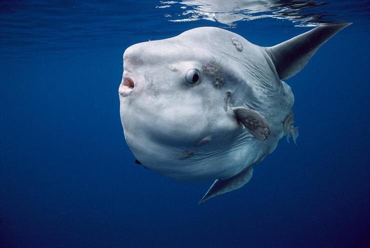 Луна-рыба отличается необычной приплюснутой с боков формой. Ее вес достигает тонны а мозг – размером с грецкий орех. Питается гигант планктоном, мальками, икрой и личинками других рыб. У рыбы-луны нет традиционного хвоста, вместо него – обводная оборка закругленного тела. Водится большая рыба в теплых водах морей. В странах Азии из нее делают деликатесы, в Европе, Австралии не признают из-за огромного числа паразитов в мясе. Самая большая луна-рыба выловлена у Индонезии, ее вес был 2,2 тонны, длина около 3-х метров.