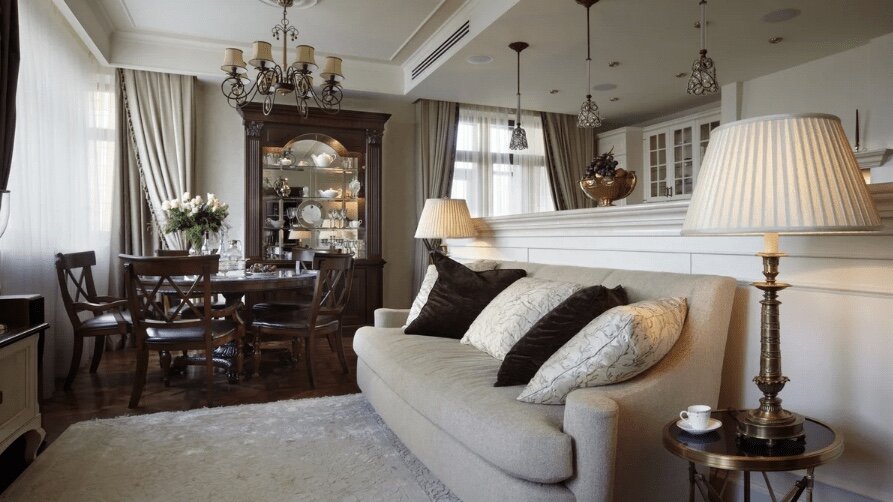 Современный американский стиль в интерьере квартиры все так же тяготеет к ар-деко и классике, но стал более функциональным и комфортным. Ар-деко и классика приветствуются в виде отдельных деталей, которые не перетягивают на себя все внимание.