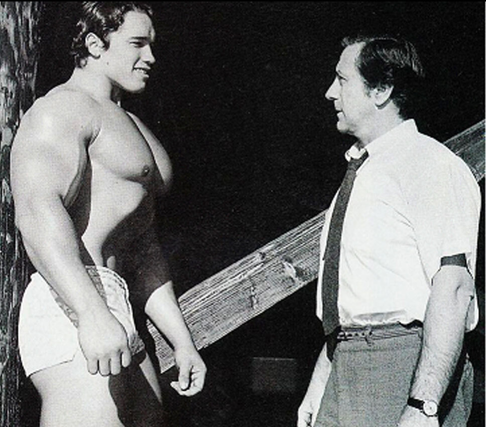 "Арнольд Шварценеггер добился успеха не мышцами, а мозгом. Иногда приходится слышать, что без меня он так и остался бы неизвестным европейским культуристом. Что же, нужно признать, что популярность европейского бодибилдинга, и вправду, в те годы была невелика. Да и по сей день Европа плохо знает имена своих чемпионов. Так что, победы на ниве местных турниров вряд ли прибавили бы Арнольду успехов. Тем не менее, я должен внести в вопрос ясность: Арнольд «сделал» себя сам. Впервые мне написал о нем мой немецкий друг Люд Шустерих. Он знал, что я покровительствую талантам, и посоветовал мне обратить внимание на Арнольда. Меня искренне удивила юность австрийского дарования. Арнольд выиграл лондонский турнир «Мистер Юниверс» в 20 лет! Это уже стало своего рода рекордом! Напомню, что бодибилдинг в те годы был совсем иным. Серджио Олива мог охватить кончиками указательных и больших пальцев свою талию. При этом его бицепсы были больше 50 см.Так что мышечная масса Арнольда меня не очень-то впечат
