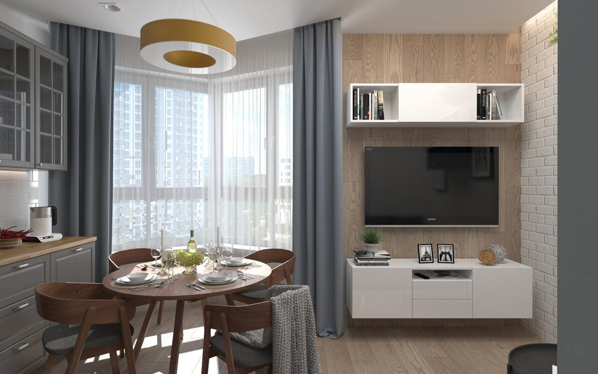 Многие из нас не могут позволить себе огромную жилплощадь. Купить 2-комнатную, а уж тем более 3-комнатную квартиру в Москве очень сложно! Поэтому тема дизайна однокомнатных квартир очень актуальна. Так почему бы не сделать из нее функциональную и и красивую однушку ,где будет удобно, и вместе с тем достаточно модно и стильно! В сегодняшней статье мы показываем вам как красиво и уютно можно обустроить однокомнатную квартиру 35 кв. метров. На просторах всемирной сети мы увидели проект дизайнера Наталья Зюзиной и влюбились в эту квартиру. Показываем кухню Наталья смогла в своем проекте совместить кухню и гостиную, что является современным и комфортным решением для небольших квартир. Взгляните на эту красоту! Переходим в комнату Тут может быть несколько вариантов: 1. Сделать полноценную спальню. Но это не в этом проекте. Кстати, на нашем канале можно прочитать, как сделать полноценную спальню в «однушке». 2. Вариант, выбранный в этом проекте – просторная гостиная, легко превращающаяся в