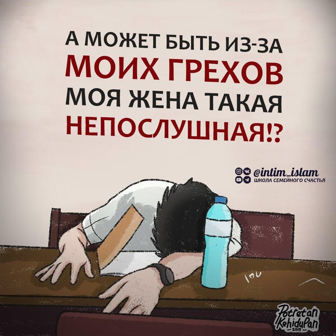 👨👩👧👦О братья-мусульмане! Если вам покажется, что ваши жены нарушают свои обязанности или обладают плохим нравом, то, может, причиной этому являются вами же совершенные грехи?! ⠀ Наши праведные предшественники говорили: «Поистине, мы замечали, что когда мы ослушались Всевышнего, это отражалось на нравах наших жен и даже наших верховых животных, на которых мы ездили». ⠀ Что касается строптивых, непослушных жен, то вы должны в первую очередь постараться поправить их советами и добрыми наставлениями. ⠀ Напоминайте им о Создателе и устрашайте их наказанием Всевышнего. ⠀ Прочитайте им кое-что из хадисов Пророка (мир ему и благословение) или дайте им прочитать их. ⠀ Если они будут продолжать упрямиться и не подчиняться, то отдалитесь от них в ложе, т. е. не спите с ними в одной постели. Но не оставляйте их одних в доме. ⠀ Если они исправятся, то это пойдет им на пользу, а если нет, то вам следует и впредь давать им наставления и избегать половой близости с ними. ⠀ Проявление б