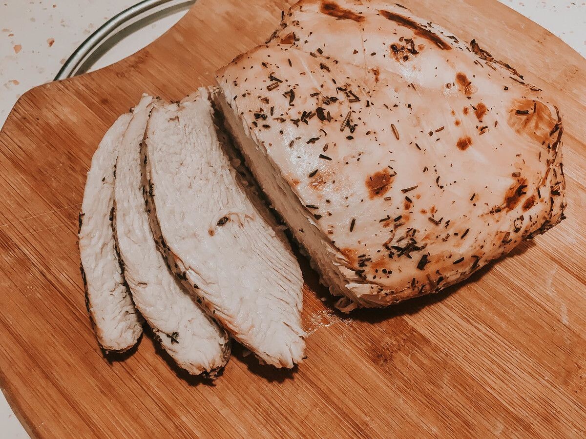 Нежная сочная грудка индейки в ароматной масла с чесноком и розмарином