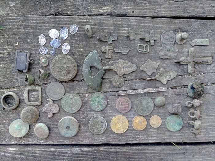 К чему такое подробное вступление? А, вы только представьте на минуточку - сколько людей приходило на ярмарки? Даже небольшие сельские рынки в день могло посетить несколько сотен человек. Сколько денег теряли под хмельными парами. Сколько прятали кошельков, не рискуя с деньгами подвыпившими засыпать в чистом поле. Сколько слетало крестиков и украшений во время танцев и хороводов. Сколько денег теряли в процессе кулачных боев? Поэтому найти подобное место, пусть и местного значения, для кладоискателя очень большая удача. Лет 5-ть назад мне повезло побывать на таком почти не тронутом месте. Находок было очень много! Одних пуговиц было собрано более 50-ти штук!