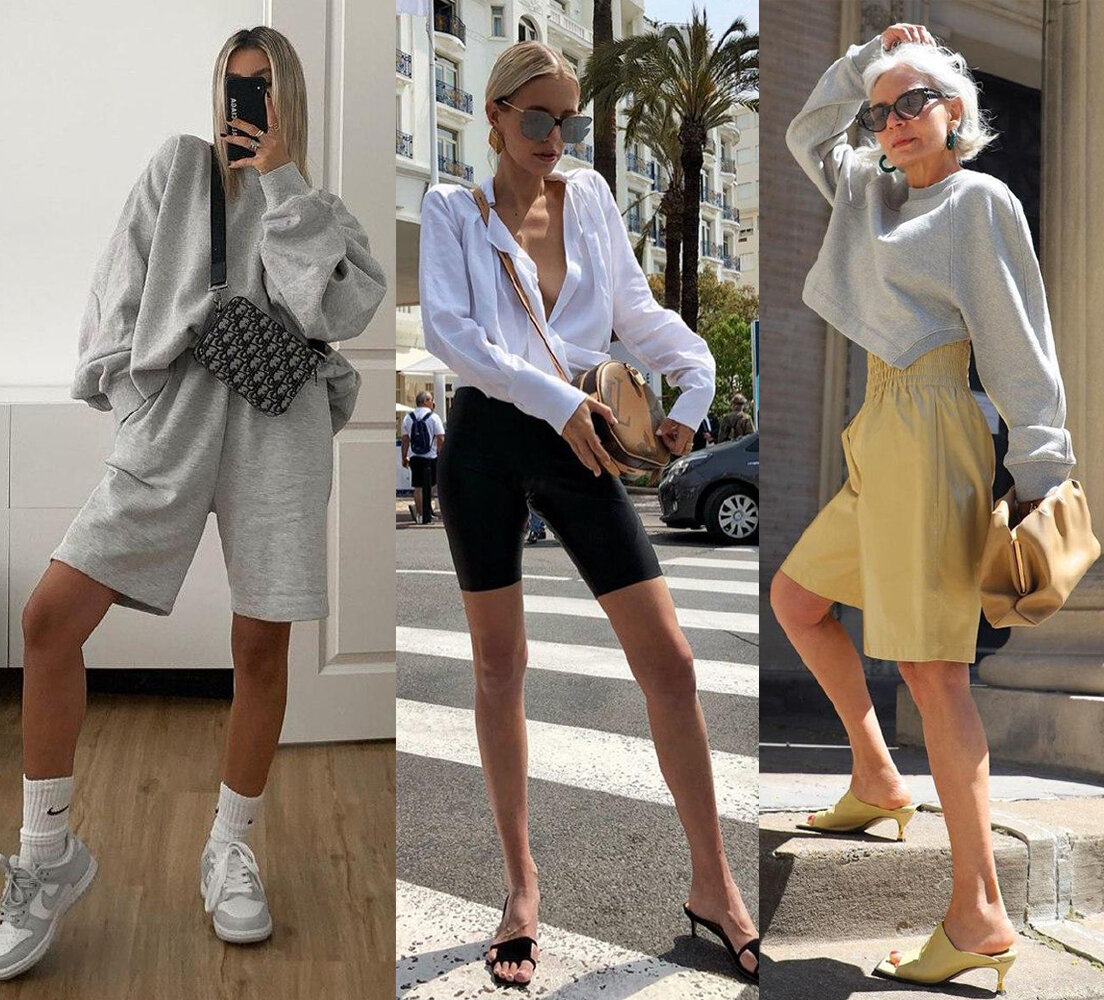 Где купить и с чем носить главные модели сезона Наконец погода радует нас долгожданным теплом, а это значит, что пора выгуливать шорты. В новом сезоне актуальны самые разнообразные модели — от ультрамодных удлиненных до коротких трикотажных. В нашей подборке вы найдете шесть стильных вариантов, а также рекомендации по сочетанию и идеи для образов. БЕРМУДЫ Шорты-бермуды — хит этого лета. Модель была замечена еще на показах Bettega Veneta, Celine и Givenchy. Дизайнеры представили варианты как для холодной погоды — из кожи и замши, — так и для теплой — изо льна и хлопка. С бермудами идеально сочетаются объемные жакеты, базовые футболки и топы. Такие шорты будут уместны даже на работе, если у вас нет строгого дресс-кода. ВЯЗАНЫЕ Во время самоизоляции многие очень полюбили трикотажные шорты. Дизайнеры Hermès, Nehera и Salvatore Ferragamo будто специально представили эту модель еще за пол года до. Конечно, вязаные шорты это история не для повседневной жизни в городе, но для пляжного о