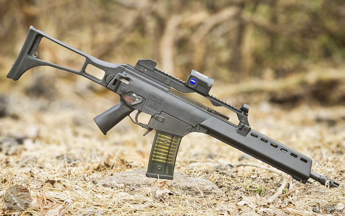 Разработана в 1990-е годы конструкторским коллективом фирмы Heckler & Koch GmbH (HK) и принята на вооружение немецкой армией в 1995 г. вместо постепенно изымаемых из пользования 7,62-мм винтовок G3. Работы над стрелковым оружием, которое в перспективе должно было заменить винтовку G3, велись в Германии с середины 1970-х годов. В результате появилась 4,73-мм винтовка G11 (фирмы HK), приспособленная для стрельбы безгильзовыми боеприпасами (Dynamit Nobel). Предусматривалось, что именно это оружие займет место G3, поэтому работы над винтовкой под патрон 5,56 х 45 мм НАТО не велись. Фирма HK также не была заинтересована разработкой нового оружия, довольствуясь производимыми на экспорт 5,56-мм винтовками HKЗЗ и G41. Однако программа G11 закончилась поражением, так как заявок на это оружие от бундесвера не поступило, а фирма HK в 1991 г. вошла в состав британского концерна British Aerospace (в настоящее время BAe Systems). Рост интереса в Германии к оружию калибра 5,56 мм стал причиной того,
