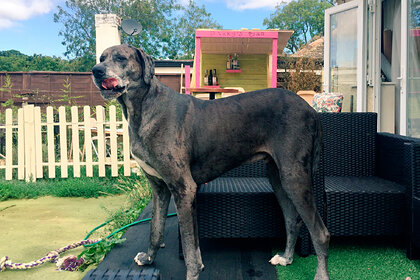 В английском графстве Норфолк немецкий дог по кличке Фредди, заслуживший звание самого высокого пса в мире, установил новый рекорд. По данным Daily Mail, Книга рекордов Гиннесса сочла его самым пожилым представителем этой породы. 17 мая Фредди и его сестре Флер, которая родилась минутами позже, исполнилось восемь лет. По этому поводу хозяйка собак Клэр Стонеман (Claire Stoneman) устроила своим любимцам праздничную вечеринку. Она развесила по участку поздравительные ленты и воздушные шары, заказала собачий торт, украшенный костями, и организовала фотосессию. Фредди и Флер отлично провели время. Мы украсили для них сад. В тот день они получили кучу любимых лакомств и плюшевых игрушек», — рассказала владелица. Фредди посчастливилось дважды попасть в Книгу рекордов Гиннесса. Немецкий дог оказался самым высоким псом в мире. Его рост в холке достигает 1,035 метра. Теперь питомец стал рекордсменом-долгожителем. Представители Книги рекордов утверждают, что Фредди — самый пожилой немецкий д