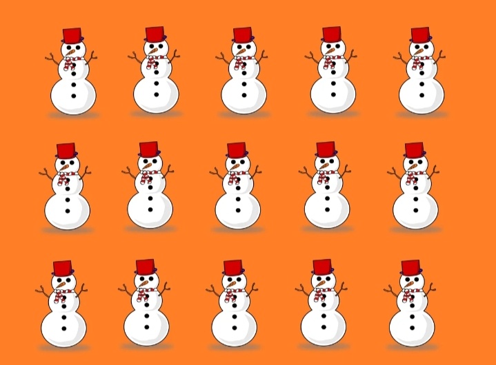 Всем привет! У меня уже есть 2 части с тестами на внимательность, там нужно найти цифры среди других, но сейчас я решила сделать несколько частей с отличиями. Начинаем! Здесь вы увидите 1 задание с отличием. Если вы нашли, то ставьте лайки! Нужно найти снеговика, который отличается от всех остальных. Смотрите внимательно. Все тесты развивают внимательность и смекалку. Я тоже раньше проходила тесты и потом я стала очень быстро находить отличия и т.д. Ответ: У 4 снеговика в 1 строке нету заколки. Вот и всё. Если вы хотите ещё тесты, то дайте знать. Обязательно ставьте лайки и пишите в комментариях за сколько вы нашли снеговика. Всё пока!