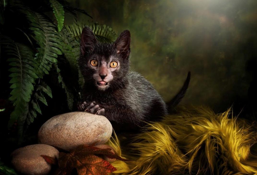 Удивительно выглядит кот породы ликой. Его шерсть черна, как ночь, однако смоляные шерстинки активно перемежаются с седыми. От этого кот выглядит как волк или опоссум.