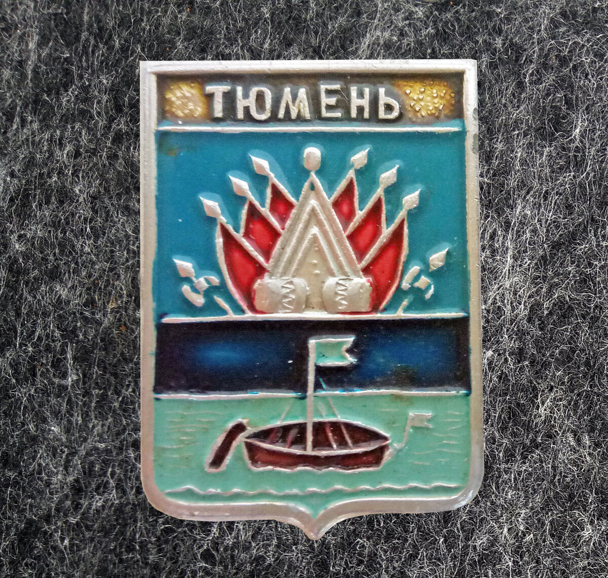 Этот закатной значок - самый новый из всех "тюменских" с возрождённым гербом города - ладьёй на синем фоне.