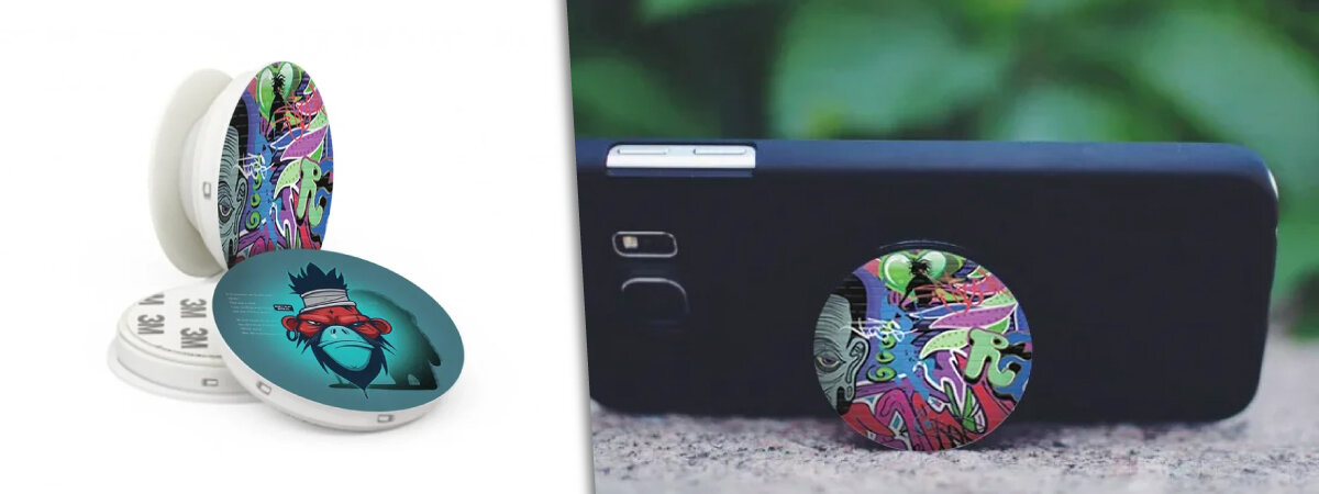 Количество и оригинальное исполнение современных мобильных аксессуаров поражают воображение. Результатом борьбы за внимание победителя порой являются совершенно новые продукты. Сегодня расскажем об одном из них, набирающем популярность – попсокет. Так называются универсальные держатели, которые крепятся на заднюю сторону мобильных устройств с помощью клеевой пленки. Универсальными они называются неспроста, а потому что могут использоваться как держатель, подставка и крепёжный элемент для проводных наушников. Помогают надежно фиксировать мобильник в руке, если вы привыкли использовать его одной. Если цените компактность, то знайте: попсокеты складываются «гармошкой» и совершенно не мешают – телефон с таким девайсом поместится даже в задний карман джинсов. При всей многофункциональности, у них довольно низкая цена. Это обеспечивает незамысловатая форма и простые материалы изготовления. Расцветки и дизайны попсокетов встречаются самые разные и ограничиваются лишь фантазией производителя.