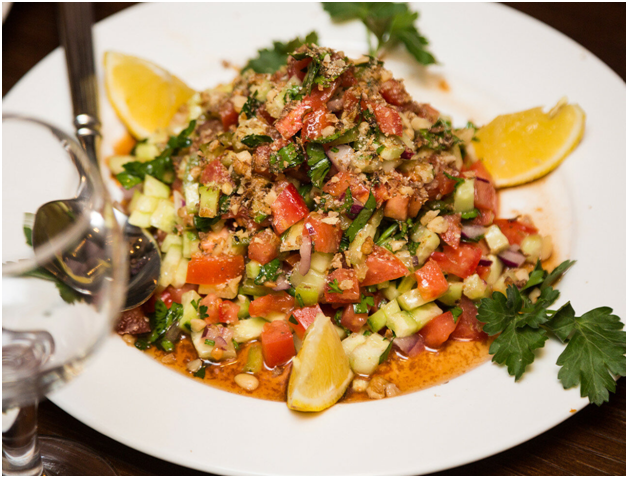 Салат свежих огурцов и помидоров — несомненно, король летнего стола. Его можно есть просто как самостоятельное блюдо (хотя без мяса — грустно и не сытно), а можно — на гарнир к шашлыку или еще какому иному мясному блюду летнему — ароматному, зажаренному на углях… Впрочем, мясо и на сковородке зажаренное пойдет. Единственное — простейшее исполнение — огурцы, помидоры, пряные травы и лук — быстро надоедает. На этот случай существует масса вариаций этого простейшего летнего салата. Например — турецкий кашик. Я не знаю как точно перевести название, потому что звучит перевод немного дико — ложковый (ложечный)салат. Скорее всего, называется он так из-за того, что есть кашик можно только ложкой. Изюминка салата — в заправке и в пропорциях. Итак, берем помидоров больше, чем сладкого перца, а перца больше чем огурцов. Помидоры и огурец чистим от кожуры, рубим мелко. Очень мелко. Кубики со стороной 0.5 см уже будут структурными в салате, но если мельче не любите или не можете нарезать — пус