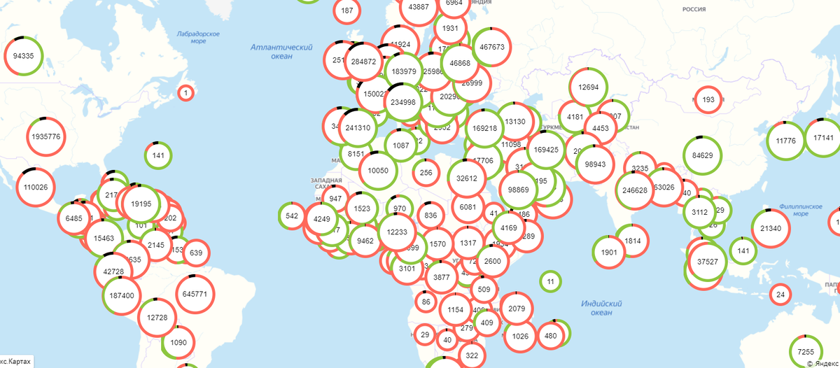 За последние сутки зафиксировано 132 тысячи новых случаев заболевания коронавирусом в мире. При этом процент л е т а л ь н о с т и в мире снижается и составляет уже 5,78%. На данным момент заболело 889 человек на 1 млн жителей планеты. Количество новых случаев в Северной Америке немного снижается, НО увеличивается доля Южной Америки и других макрорегионов. Устойчивы рост новых случаев в Южной Азии, Африке, Центральной Америке и Западной Азии. За последние сутки Индия обогнала Россия по новым случаям, Чили, Пакистан, Мексика и Перу показывают прирост 4-5000 новых в сутки. ОТКУДА ДАННЫЕ: Мы публикуем ТОЛЬКО официальные данные ВОЗ и данные с официальных сайтов министерств здравоохранения стран, в которых есть коронавирус. По США данные собираются по каждому штату. ПОЧЕМУ НА ДРУГИХ САЙТАХ ДРУГИЕ ЦИФРЫ? 1. Многие сайты используют модели распространения коронавируса, чтобы каждую секунду не вводить данные и ЯКОБЫ показывать свежие данные на данный момент. НО если сравнить их данные с официа
