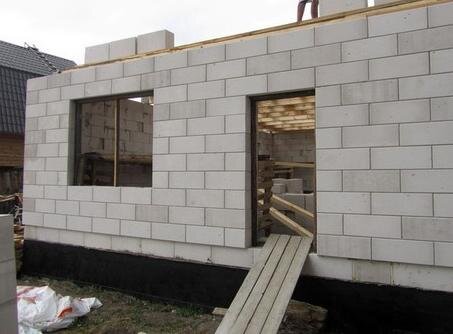 В домах из пеноблоков не возникает проблем с конденсатом. Но балки перекрытий и конструкция кровли должны опираться на более прочную основу, чем пеноблоки, для чего поверх стен делают монолитные железобетонные или кирпичные пояса.