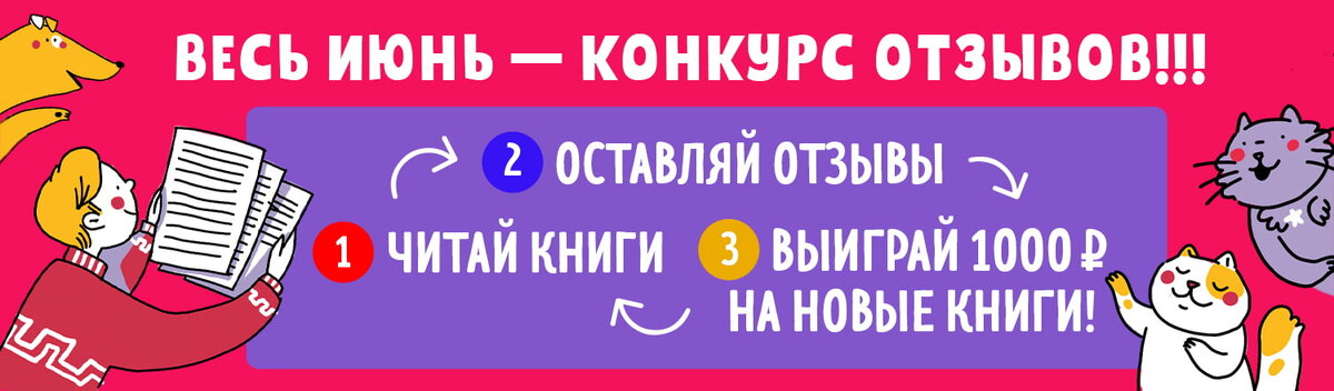 Помните у меня была просьба - написать отзыв на мои прочитанные книги Clever? Теперь вы можете не просто оставить отзыв, но и стать победителем. Clever запустил "Конкурс отзывов". И в конце июня выберут пять счастливчиков. Приглашаем всех читателей поучаствовать в конкурсе с книжными подарками! Все проще простого: с 8 по 30 июня оставьте отзыв на любую книгу Clever в нашем интернет-магазине и участвуйте в розыгрыше призов! Случайным образом мы выберем 5 победителей, которые получат промокод на 1000 рублей!* Что нужно делать: Мы же говорили: все просто! Так что вперед, навстречу книжным подаркам! Подробнее о правилах написания отзывов Как видите, ничего сложного!