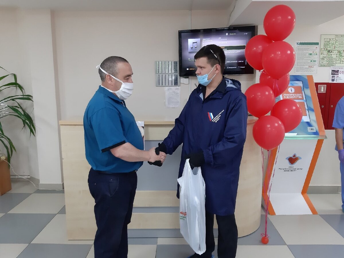 В рамках акции Станьте донором крови активисты ОНФ, магазин «Галамарт», волонтерский центр «Барс» и благотворительный фонд «Лига добрых людей» вручили бытовые наборы нижнекамским почетным донорам и медицинским сотрудникам. Активисты ОНФ в Татарстане, будучи участниками акции #МыВместе, стали донорами крови для нуждающихся. Ребята сдали ее на базе Центра крови в Нижнекамске. Они напомнили, что это может сделать любой здоровый человек. В условиях распространения коронавируса доноров крови часто не хватает. Резерв необходимо восполнять, чтобы у врачей всегда оставалась возможность спасти чью-то жизнь. Для того, чтобы стать волонтером в сфере донорства, не требуется профильного образования и даже опыта сдачи крови — существует немало примеров, когда добровольцами становились те, кто не смог войти в число доноров по медицинским показаниям. Самое простое, чем можно помочь в организации донорского движения, — распространять информацию о проблеме.