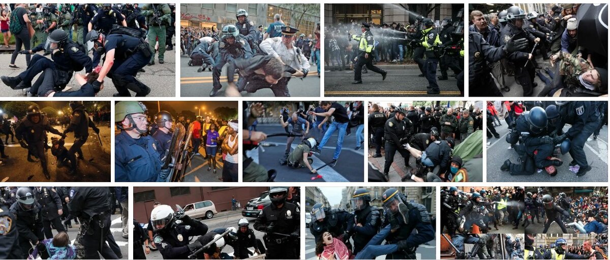 Пожилой человек, с явной сединой, белый, пытается противостоять шеренге полицейских, что движутся, вообще говоря, по полупустой уже от демонстрантов, улице, он без авосек и стоит не перед танками, и потому еще видимо его не собираются обходить, его довольно грубо отталкивают, он падает как подкошенный столб, ударяется затылком о дорожные бетонные плиты, и замирает в луже крови. Случай, с крайне малой вероятностью, многократно дисквалифицированный полицией в показаниях преступников, что прикрываются им, из одного экранизированного детектива в другой, – мол его толкнули, он упал и расшиб себе голову, –выпал, и выпал полицейским. Растерянный президент, - конечно же это случайный монтаж новостных каналов, CNN, BBC News- говорит о равенстве, видимо, перед беззаконием и произволом полицейских. Но еще раз, полиция действует в штатах, в таких ситуациях, так безапелляционно, очень давно. Все протесты подавляются, быстро и жестоко. Этот пожилой человек не мог не знать этого, и был ли он еще и слепой, коль скоро, мог быть и эмигрантом?