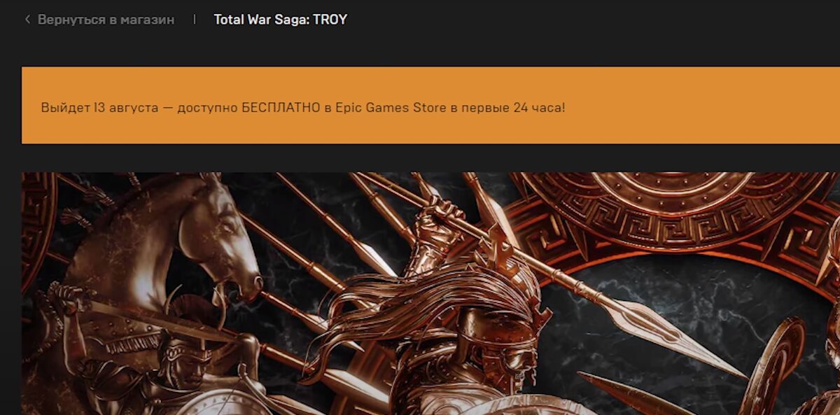 13 августа 2020 года, то есть буквально через пару месяцев выйдет Total War Saga: TROY. Разработчики сообщили дату релиза в трейлере игры, который был выпущен в начале июня. Но это не самая приятная новость для любителей Total War. Гораздо круче тот факт, что игру можно будет получить совершенно бесплатно! Да, полноценную стратегию разработчики отдадут навсегда и не попросят за это ни копейки. Еще больше фанатов может порадовать то, что раздача будет проходить прямо в день релиза. Праздник халявы продлится ровно 24 часа, после этого за игру придется платить. Total War Saga: TROY будет эксклюзивом для Epic Games Store. Зная любовь этого магазина к масштабным и громким раздачам игр, перестаешь удивляться такому щедрому предложению. Эксклюзивные права на продажу игры у Эпика будут в течение года. На странице игры в магазине Steam в графе “Дата выхода” указан 2021 год. Подпишись на меня во Вконтакте и Телеграме, а также на Youtube. Так ты будешь в курсе выхода новых интересных статей, а на