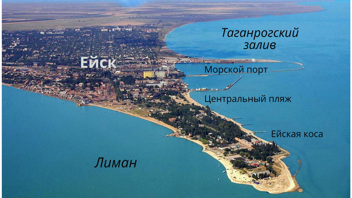 Город Ейск практически полностью расположен на косе. Но местные называют косой самое окончание полуострова, которое начинается от Центрального пляжа.