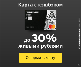 Карта Tinkoff Black. До 4% годовых на остаток по счёту и до 30% кэшбэка. Основные условия Дебетовая карта с бесплатным обслуживанием при выполнении одного из условий: Оформить карту на официальном сайте → Если все условия из списка выше не выполнены, карта будет стоить 99 рублей в месяц. На остаток по счету до 300 000 рублей начисляется 4% годовых. За любые покупки с использованием карты возвращается кэшбэк 1%, За покупки по выбранным категориям – кэшбек до 15%. Выбор категорий осуществляется каждый месяц в личном кабинете на сайте банка. Покупки у партнеров банка – 30% кэшбэка. Список партнёров можно увидеть в приложении или личном кабинете. За операции снятия наличных и переводы на карты других банков комиссия не взимается в пределах лимитов в месяц: Снятие наличных в банкоматах Тинькофф 500 000. За снятие свыше лимита комиссия 2% от суммы, превышающей лимит. Снятие наличных в банкоматах любых банков 3000 — 100 000 рублей. При выдаче наличных менее 3 000 рублей комиссия 90 ₽. Перев
