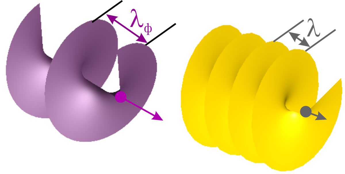 Во сколько раз длина волны рентгеновского излучения с энергией квантов 50 кэВ меньше, чем видимого фиолетового света с длиной волны 400 нм? // Ремизов А.Н., Максина А.Г. "Сборник задач...", 2001 г. https://bookmix.ru/bookprice.phtml?id=84492 Список решённых на данный момент задач из сборника Ремизова находится тут На рисунке изображены волновые фронты световых вихрей. Шаг спирали - длина волны излучения, несущей электромагнитный вихрь.