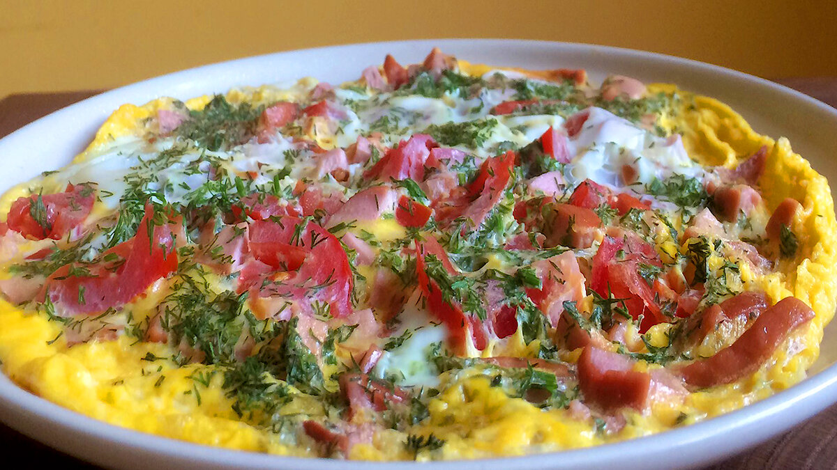 Когда совсем нет времени готовить можно воспользоваться микроволновкой для приготовления вкусного завтрака. Всего несколько минут и горячий сытный завтрак у вас на столе! РЕЦЕПТ: Сосиски или колбасу нарезаем кубиком: Помидоры моем, обсушиваем и нарезаем кубиком: Свежую зелень укропа хорошо промываем под проточной водой, обсушиваем и мелко нарезаем: Яйца разбиваем в кружку: Взбиваем яйца вилкой. Молоко добавлять не нужно, оно даст лишнию влагу, что для приготовления в СВЧ нам не нужно: Смазываем тарелку сливочным маслом, чтобы омлет не прилип: Выкладываем на тарелку мелко порезанные сосиски или колбасу: Кладем сверху помидоры: Сверху посыпаем свежим укропом: Выливаем взбитые яйца, по желанию можно посолить и поперчить: Ставим в микроволновку и готовим при сильной мощности 2-3 минуты: Сразу же подаем на завтрак: Вкусный , сытный и полноценный прием пищи готов: Это быстро, просто и очень вкусно! Попробуйте приготовить. Всем приятного аппетита! Более подробное приготовление смотрите в
