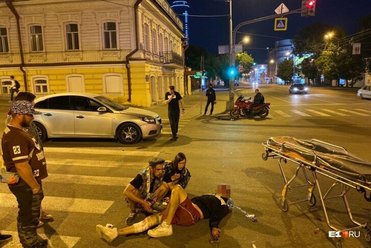 В центре города иномарка сбила екатеринбуржца, который ехал на самокате. ДТП случилось на перекрестке Первомайской и Карла Либкнехта. Мужчина серьезно пострадал. — Ехал пьяный приколист-неформал на красный и врезался в машину. Оказал ему медицинскую помощь, перетянул ногу, дождался скорой и ушел, — рассказал читатель E1.RU Александр.