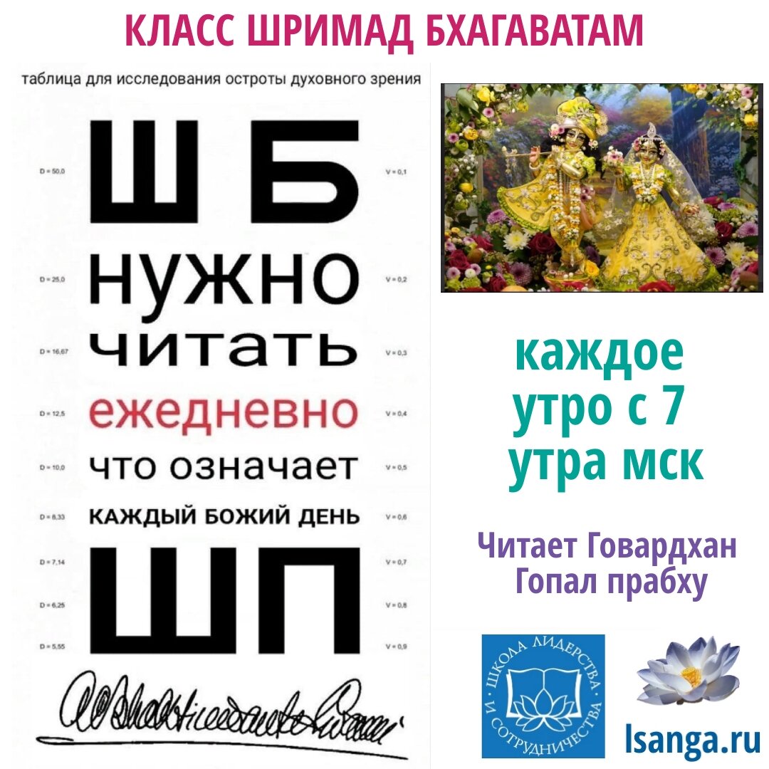 🦚 КЛАСС ШРИМАД БХАГАВАТАМ ПО УТРАМ КАЖДЫЙ ДЕНЬ 🤳 Читает Говардхан Гопал прабху _________________ 🙏 Харе Кришна, дорогие преданные! Примите наши поклоны! Вся слава Шриле Прабхупаде! НАПОМИНАЕМ вам, что с 25 марта ежедневно по утрам Школа Лидерства и Сотрудничества организует класс Шримад Бхагаватам. 👥 Пожалуйста присоединяйтесь, нас уже более 1000 человек. Присоединяйтесь сами, приглашайте друзей и знакомых. ⏰ С 7.00 до 8.00 часов утра по Московскому времени _________________ 💙Отзыв от слушательницы: Харе Кришна, дорогие преданные. Примите мои поклоны. Нам часто говорят старшие преданные, насколько мы удачливы, имея возможность изучать ШБ и часто, воспринимая это как должное, не придаёшь должного значения. Переслушивая занятия с Говардхан Гопалом Прабху мне всегда открываются новые смыслы, приходят более глубокие осознания и выводы. Слушаешь то, что, казалось бы знаешь, но понимаешь, насколько безгранично это знание. Появляется стойкое желание следовать тому, что изу