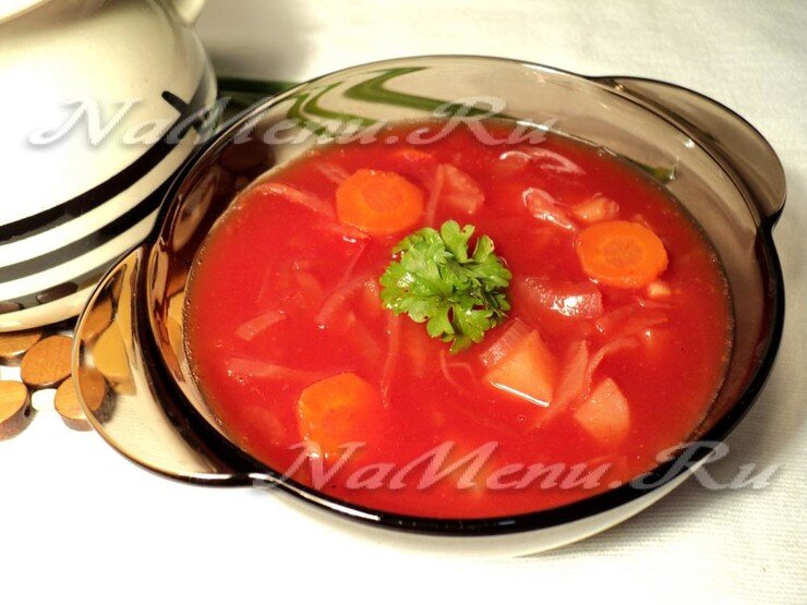 💦Разводим в очищенной воде томатную пасту и выливаем в горшочек, солим и при желании кладем приправы либо специи (молотые кориандр, черный перец, паприка, тимьян, орегано, смесь перцев и другие)