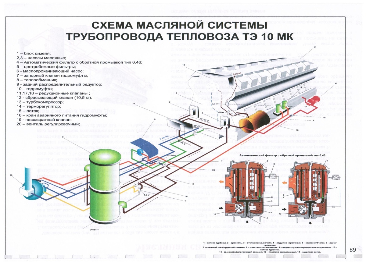 Схема масляной система тепловоза серии ТЭ10 с дизелем 1А-9ДГ