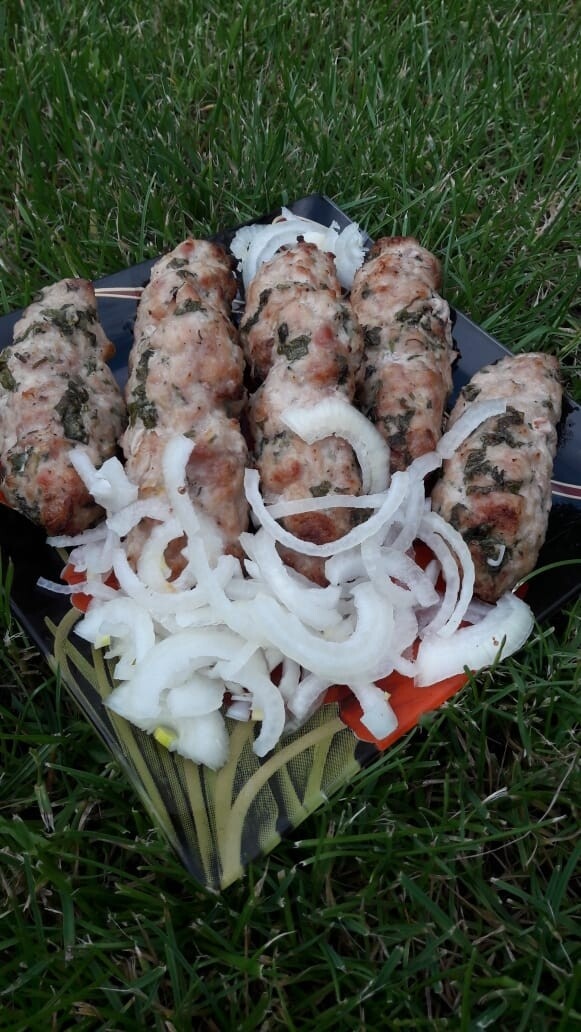 Ингредиенты : 600г фарша 2 луковицы 3 зубчика чеснока соль,приправа зелень Для маринада : 1 луковица 1ст.л. лимон. сока 2ч.л. растит. масла соль зелень по вкусу Сначала маринуем лук . Лук нарезаем полукольцами .Добавляем туда : масло ,сок лимона ,зелень ,соль - всё хорошо перемешиваем .Убрать в холодильник на 1 час . Затем лук измельчить . В фарш добавляем лук ,измельченный чеснок ,приправу ,зелень и соль .Хорошо перемешиваем . Убрать готовый фарш на 30мин в холодильник . Подготовить емкость с водой ,для смачивание рук . Мокрыми руками сформировать лепешку ,в цент вложить шпажку и сформировать продолговатую котлету . Выкладываем подготовленные люля-кебаб на противень и запекаем в разогретой до 180С духовке 20-30 минут. Подавать с луком и зеленью ! ПРИЯТНОГО АППЕТИТА !!!