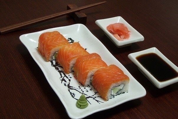 Суши филадельфия дома Ингредиенты: Прессованные водоросли нори – 1 лист Сливочный сыр Филадельфия — 100 г Суши – рис — 130 г Огурец свежий — 1 шт Лосось (семга) слабосоленый – 150 г Авокадо –1 шт. Соус васаби — по вкусу Соус соевый – по вкусу Имбирь маринованный — по вкусу Приготовление суши филадельфия по рецепту: 1. Бамбуковый коврик оборачиваем пищевой пленкой. 2. На бамбуковый коврик выкладываем половину листа нори блестящей стороной вниз. 3. Сверху, на сантиметр сместив вверх, влажными руками кладем готовый рис и равномерно распределяем его по нори. 4. Дальше накрываем рис ковриком, прижимаем, переворачиваем и раскрываем. 5. Нори оказываются сверху. На нори кладем сыр филадельфия. Как вы будете класть сыр – дело ваше: можно равномерным слоем распределить по водорослям, а можно дорожкой по центру будущего ролла. 6. Огурцы и авокадо нарезаем тонкой соломкой. Часть роллов можно сделать с авокадо, часть – с огурцом. Выкладываем их в середине ролла. 7. Аккуратно сворачиваем ролл. 8.