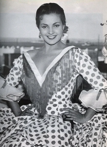 Мария дель Кармен Гарсия Галистео (1930 г.р.) - профессиональное имя Кармен Севилья. Кармен яркая представительница культуры Испании - актриса, певица и телеведущая. Она родилась в творческой семье, с детства обучалась танцам и пению, впервые самостоятельно выступила на сцене в возрасте 12 лет. Училась в консерватории. Первая главная роль в кино была исполнена Кармен в 1949 году в фильме "Jalisco canta en Sevilla". Популярной Кармен сделали музыкальные фильмы "Императорские фиалки" и "Красавица из Кадиса", снятые в 1952 году. Кармен Севилья стала первой испанской актрисой, которую пригласили участвовать в фильмах, совместно продюсируемых американскими и европейскими кинематографистами. Она появлялась в одном кадре с такими звездами первой величины, как Полетт Годдар, Витторио де Сика и Раф Валлоне. Ей прочили большую международную карьеру и предлагали семилетний контракт с одной из киностудий Голливуда. Но она решила отказаться, так как не захотела покидать родную Испанию на