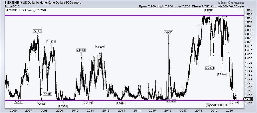 ЦБ Гонконга не даст курсу USDHKD упасть ниже 7,750. Жители Гонконга начали панически скупать доллары США на фоне роста санкционного давления, поэтому ЦБ решил вмешаться. Коротко о главном. Не вижу смысла размазывать бесполезный текст на целую страницу.