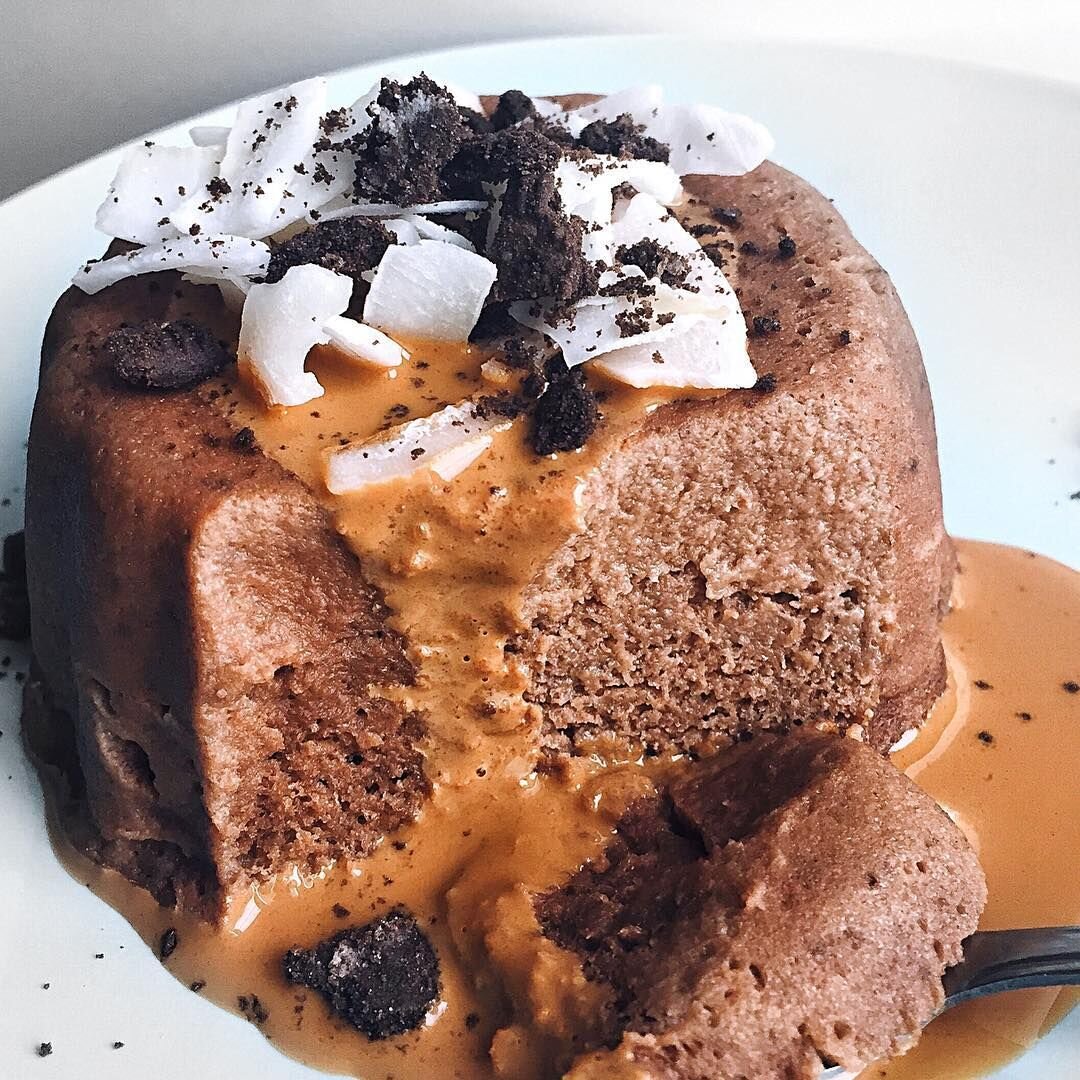 - смешиваем яйцо, муку, подсластитель, ванилин, разрыхлитель, подсластитель, какао, пюре и хорошо перемешиваем