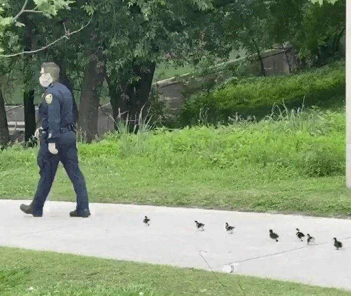 Полицейские, работающие в закрытом на карантин Мемориальном парке города Хьюстон, США, помогли потерявшимся утятам. Крохи, которые скорее всего оторвались от мамы, выстроились за стражами порядка и гуськом последовали за ними. Эту милоту засняли на видео.