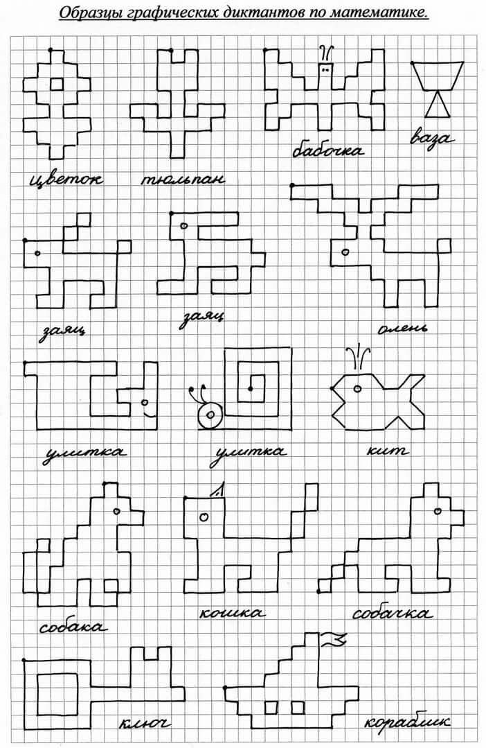 Графический диктант - это прекрасный метод для формирования у дошкольников графических умений, необходимых для развития навыка письма, рисования, начертания цифр. Кроме того, графические диктанты развивают пространственно мышление, усидчивость, воображение, умение ориентироваться в пространстве. Педагоги ширако используют данное упражнение для подготовки ребёнка к школе. В чем суть данного упражнения? Ребёнку необходимо воссоздать изображение согласно инструкции. Возможно несколько вариантов выполнения данного упражнения: Ниже представляю вам подборку интересных графических диктантов.