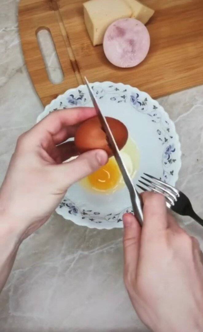 Всем доброго времени суток! Не знаете, чем себя порадовать с утра? В этой статье я расскажу вам, как приготовить завтрак так, чтобы это получилось быстро, вкусно, а главное оригинально. 1. Разбиваем яйца и добавляем соль(по вкусу). 2. Перемешиваем до однородной массы. 3. Натираем ветчину и сыр на тёрке. 4. Обжариваем натёртую ветчину. 5. Убираем ветчину и выливаем приготовленную однородную массу из яиц. Обжариваем. 6. Добавляем натёртый сыр и обжаренную ветчину. 7. Складываем получившееся таким образом, как показано на картинке(должен получиться конвертик). Готово! Мы получаем очень вкусный и оригинальный завтрак, который зарядит вас положительной энергией на весь день. Спасибо за внимание! Ставьте лайки! Пишите комментарии! Подписывайтесь на канал!