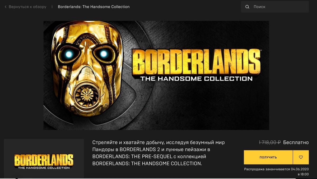 В магазине Epic Games Store стартовала раздача коллекция игры BORDERLANDS,в набор входят игры Borderlands 2,Borderlands:The pre-sequel.