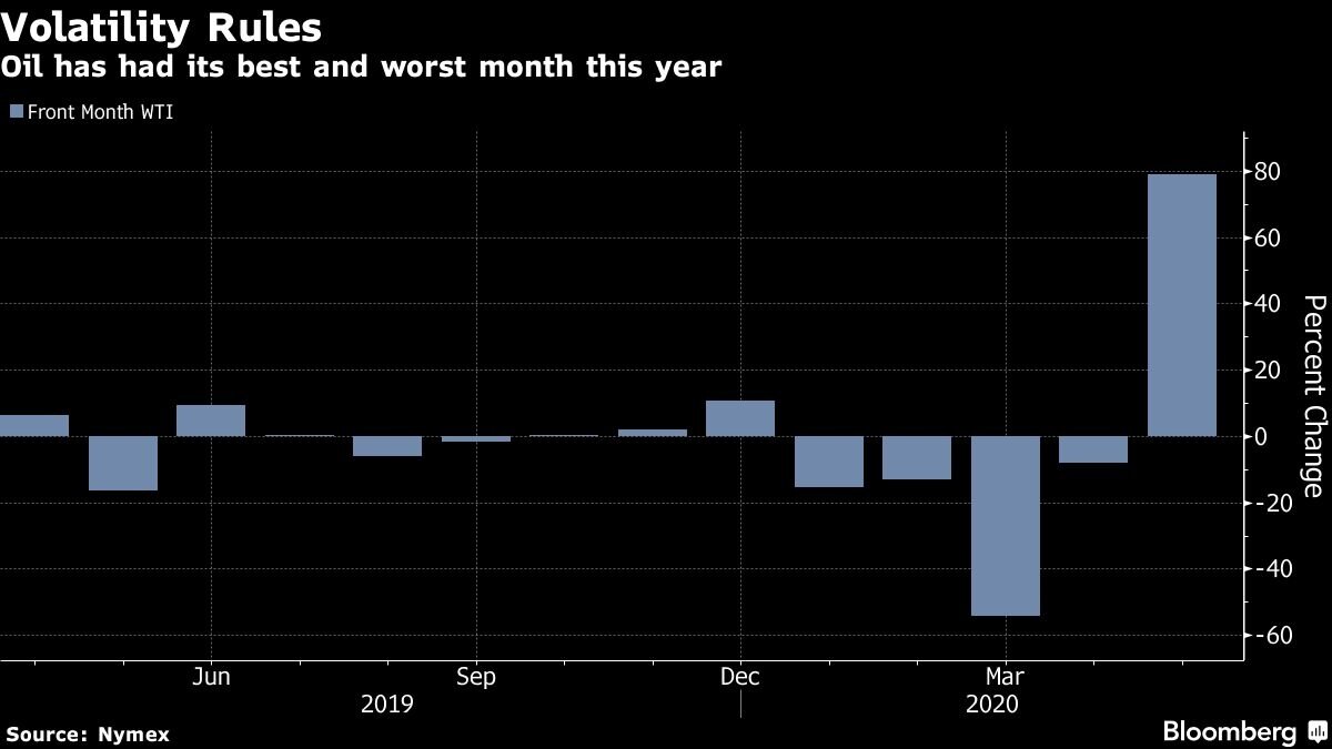 Нефть находится на пути к самому большому за всю историю месячному приросту после того, как ослабление блокировок коронавирусом подняло оптимизм в отношении восстановления спроса, а ведущие мировые производители сократили свою добычу. Фьючерсы в Нью-Йорке немного снизились в пятницу после роста на 2,7 процента днем ранее. В то время как данные правительства США показали, что запасы американской нефти на прошлой неделе выросли почти на восемь миллионов баррелей, прогноз спроса улучшается. Среднее значение четырехнедельного бензина, поставляемого на рынок, неуклонно росло по мере того, как некоторые части страны выходили из-под контроля коронавируса. Управление энергетической информации вновь опубликовало большой отрицательный поправочный коэффициент, указывающий, что производство, вероятно, ниже, чем показывают официальные данные. Ориентир по сырой нефти в США в мае подскочил почти на 80 процентов, что стало самым большим приростом биржевых данных, собранных Bloomberg, начиная с 19