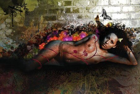 Шаг 10. Применив имеющиеся навыки рисования, нарисуйте что-нибудь красивое и отсканируйте, либо найдите в интернете красивый векторный рисунок. Поместите этот рисунок ниже главного изображения с девушкой. Затем смените режим наложения на Умножение и следующее: Edit > Transform > Perspective (Редактирование - Трансформирование - Перспектива), чтобы растянуть его в соответствии с нашей композицией.