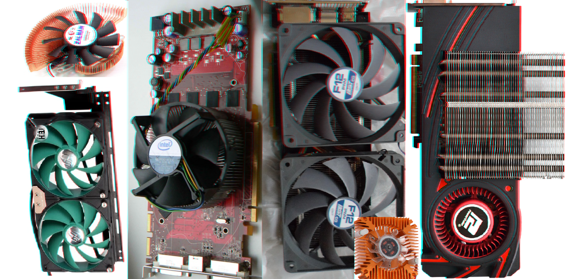 В нулевые годы бурно расцвели самодельные системы охлаждения для видеокарт. "Кулибины" с компьютерных форумов меняли на видеокартах вентиляторы, ставили радиаторы от процессоров и городили дополнительный обдув.