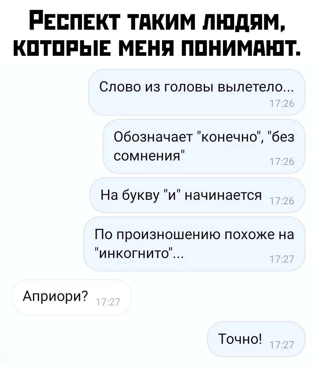 👉🏻Дело в том, что в философии этот термин означает — иметь о чём-то представление, не проверив это на практике (a priori — «из предшествующего»). У этого слова есть даже свой антоним - «апостериори». Это когда есть суждение, уже основанное на опыте. Но вы его, пожалуйста, не запоминайте, пока не выучите АПРИОРИ.