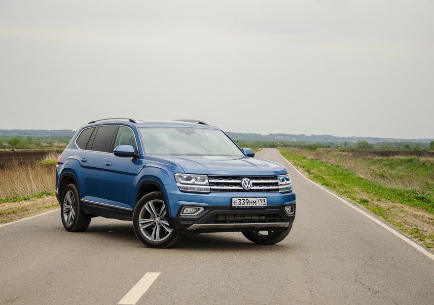 Volkswagen Teramont вполне может конкурировать с квартирой. У него тоже в своем роде три комнаты, рассчитанных на семерых или шестерых человек, вместительная гардеробная и цена от 3 009 000 до 4 059 000 рублей в зависимости от комплектации. Вот этот светло-синий кроссовер в версии Exclusive оценен в 3 952 000 рублей. У него 6 мест, 2-литровый турбомотор, 8-ступенчатый автомат и полный привод. У нас два мнения на его счет.