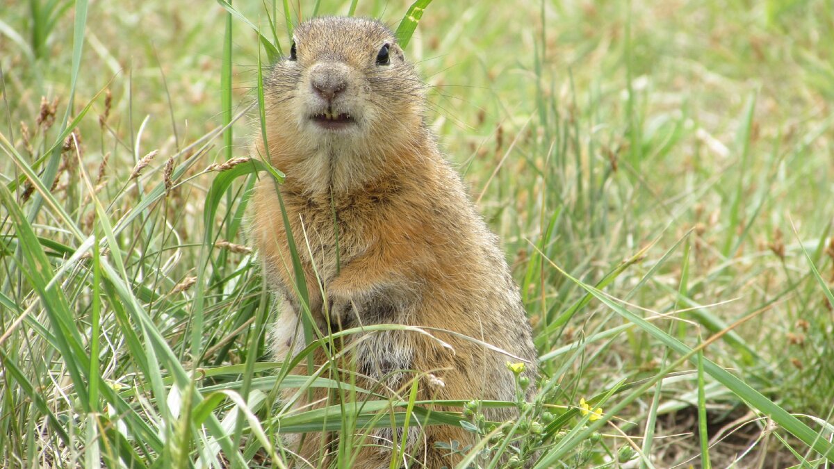 Не самую лучшую погоду я выбрал для прогулки по острову спорта Татышев, который находится в Красноярске. В этом году у нас очень ранняя весна и буквально пару дней назад можно было даже купаться. Но пришёл долгожданный дождь, а вернее ливень, и похолодало. Начну с того, что здесь имеются коренные жители — это суслики. Их тут просто огромное количество. Целые поля просто усыпаны ими и их норами. Многие из них практически ручные и прикормленные посетителями острова. Дети от них просто в восторге и люди целыми семьями приезжают только ради них. Это сильно сказывается на их популяцию. Некоторые пугливые, но многие едят прямо из рук. Водятся тут и лисы. Ориентировочно, появились они тут пять лет назад и спустившись по реке в поисках пищи. Ну а тут для них настоящий клондайк в виде сусликов и мышей. Но если бы не они, то на острове ступить бы некуда было от количества сусликов. Одну из них я заприметил, но только навёл на неё объектив как её и след простыл. Пошёл в её сторону, но так и не у