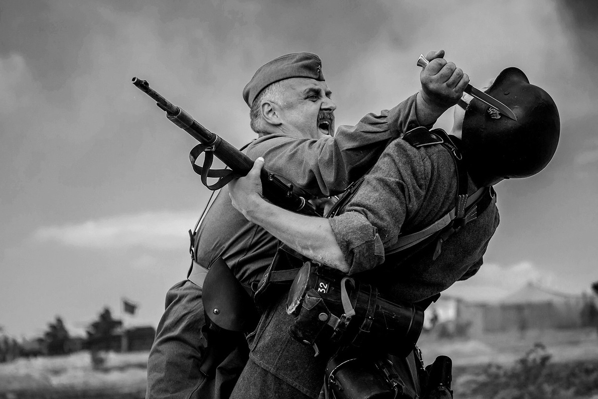 Традиции рукопашного боя на Руси существовали испокон веков. В ходу были кулачные бои, драки по праздникам «стенка на стенку»… Во время Финской войны обнаружились пробелы в боевой подготовке красноармейцев, и накануне Великой Отечественной была проведена реформа советских сухопутных сил, в ходе которой стрельба, метание гранат и штыковой бой составили единый учебный курс. Это впоследствии очень пригодилось во время боев в городских и окопных условиях. Вот описание тактики штурма укреплений противника, данное генерал-лейтенантом Герасимовым: «С дистанции 40-50 метров атакующая пехота прекращает огонь, чтобы одним решительным броском достичь траншей противника. С дистанции 20-25 метров она применяет ручные гранаты, метаемые на бегу. Дальше следует выстрел в упор и поражение врага холодным оружием». Несмотря на то, что в начале Великой Отечественной войны Красная Армия несла сильные потери, выяснилось, что у нее есть и преимущества: так, в рукопашном бою солдаты вермахта сильно уступ