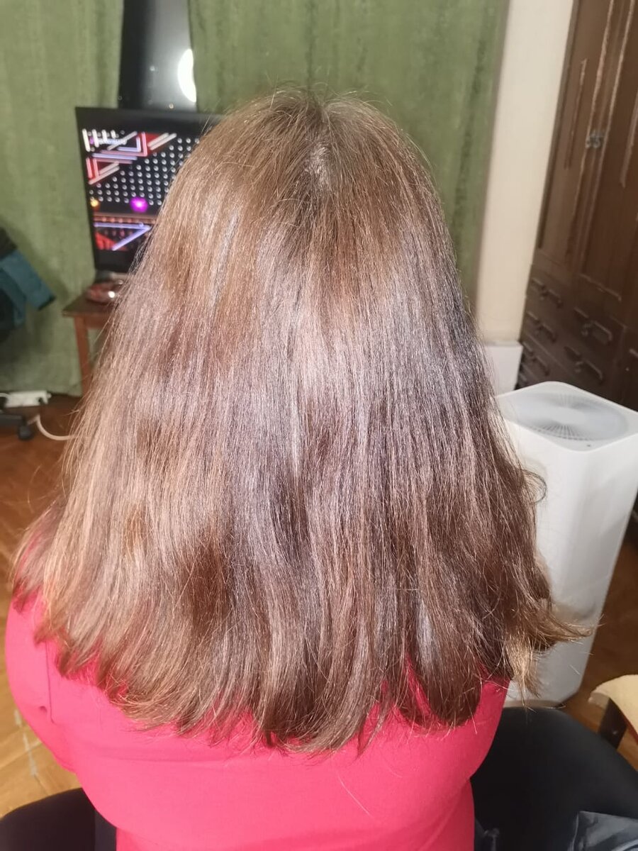Как добиться гладких,блестящих волос как в рекламе шампуня? Вряд ли уходовое средство,будь то бальзам, маска, или какое то еще чудо индустрии,предназначенное для домашнего ухода поможет вам в этом, если у вас пористые или вьющиеся волосы.И тут на помощь приходит кератиновое выпрямление (восстановление) волос. Опробовав данное средство на себе, врядли я когда нибудь смогу от него отказаться.Для примера мои фото до и после: Перед процедурой После процедуры Вот такая красота получилась.Держится примерно 4-5 месяцев.После кератин смывается, волосы становятся такими же,как до процедуры, с той разницей, что пока держится кератин волосы не секутся,отрастить длину под кератином намного проще. При этом пользоваться желательно бессульфатным шампунем,чтобы не смыть кератин. Сама процедура происходит следующим образом: 1. Волосы моются шампунем глубокой очистки,сушатся. 2.На подсушенные волосы наносится специальный состав, выдерживается полчаса, затем сушится феном (исключительно холодным возд