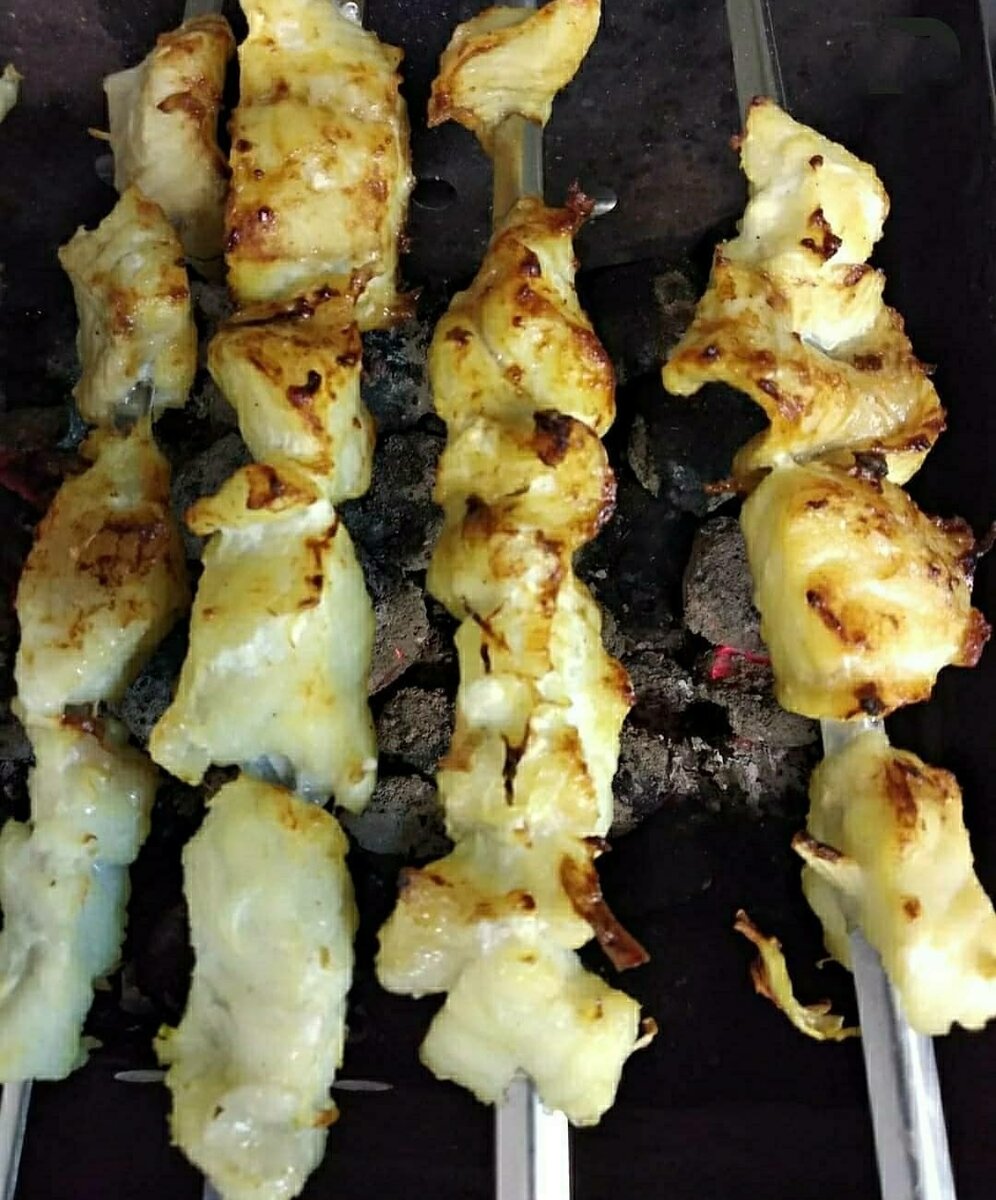 Если не любите вкус рыбы - маринуйте в майонезе с яркиси специями. После 12 часов маринования веус у шашлыка будет почти как у курицы.