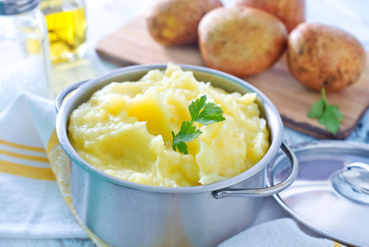 Когда картошка будет готова, слейте молоко в любую емкость и разомните овощи в пюре. Подливайте молоко по надобности. Добавьте немного масла сливочного и обжаренный лук, все перемешайте. Вкусная, нежная и ароматная картошечка готова!
